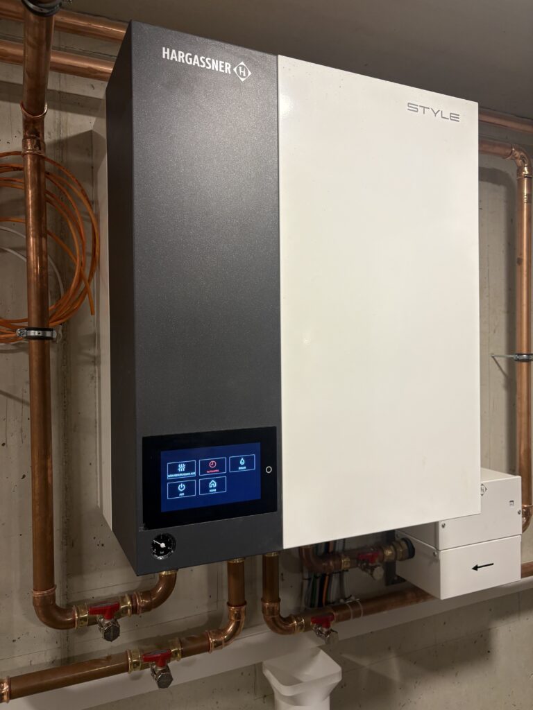 Wenn die Temperaturen jedoch stark sinken oder Sie einen erhöhten Wärmebedarf haben, kommt die Stückholzheizung ins Spiel. Sie kann optional zugeschaltet werden, um Spitzenlasten abzudecken. Dies ermöglicht nicht nur eine Reduzierung der elektrischen Heizleistung in kälteren Perioden, sondern auch eine signifikante Einsparung bei den Investitionskosten für die Wärmepumpe, da diese kleiner dimensioniert werden kann. Die kleinere Wärmepumpe arbeitet zudem effizienter, was sich positiv auf Ihre Stromrechnung auswirkt.